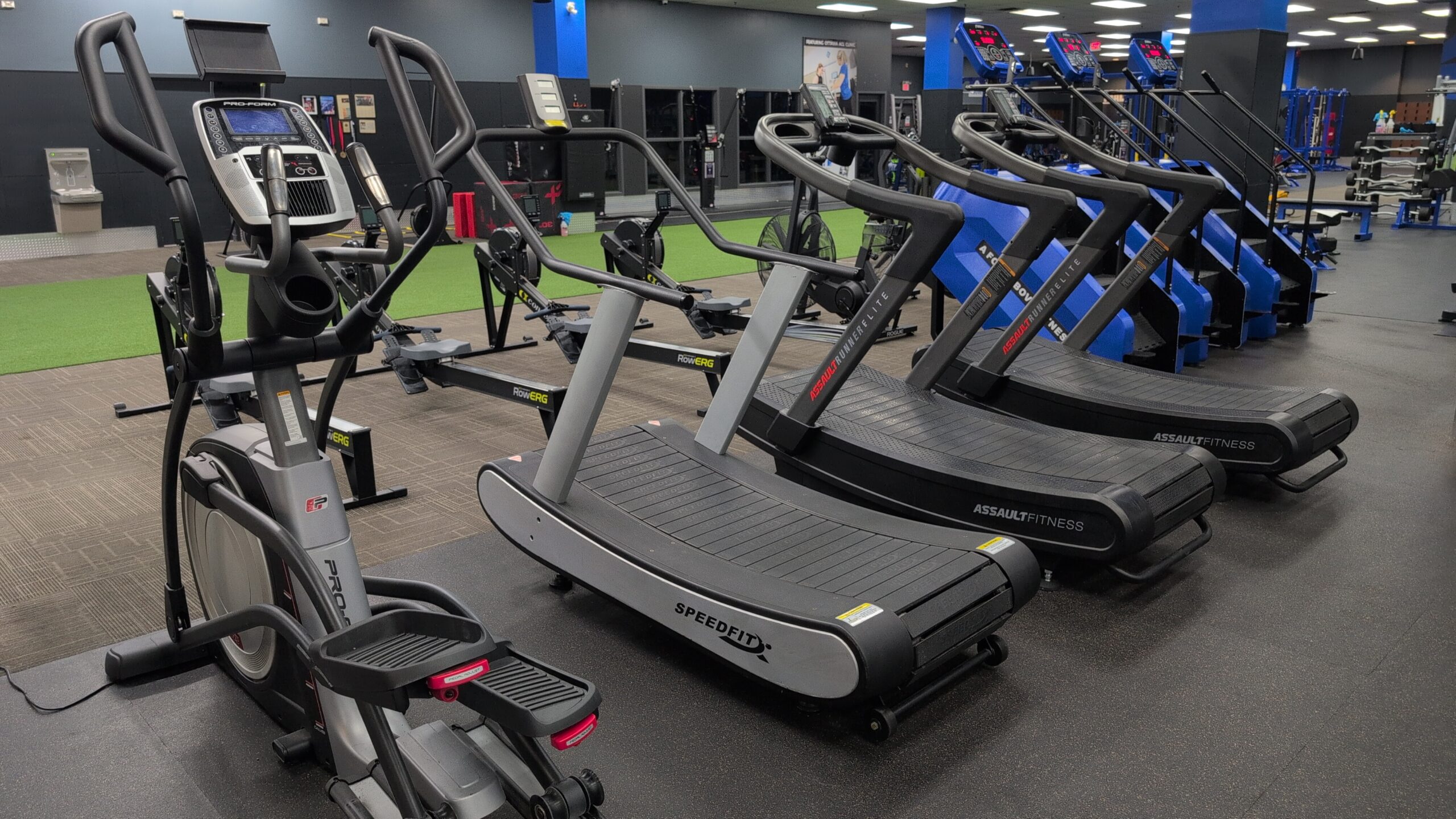 Ready to kickstart your fitness journey? Our 1500 sqft of premium turf is perfect for high-intensity training, agility drills, and functional movements. With top-of-the-line equipment like curve treadmills, Stairmasters, rowing machines, skiergs, bike ergs, and Echo bikes, you’ll have everything you need to push your limits. Whether you’re aiming to build endurance, burn fat, or challenge yourself with an intense cardio session, our gym offers the ideal space and tools to help you succeed. Get started today and feel the difference with every workout!